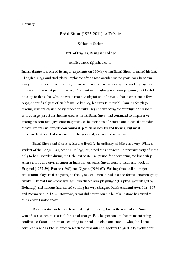 Badal Sircar Plays Pdf - How do you stay 'an actor' when you have no work?