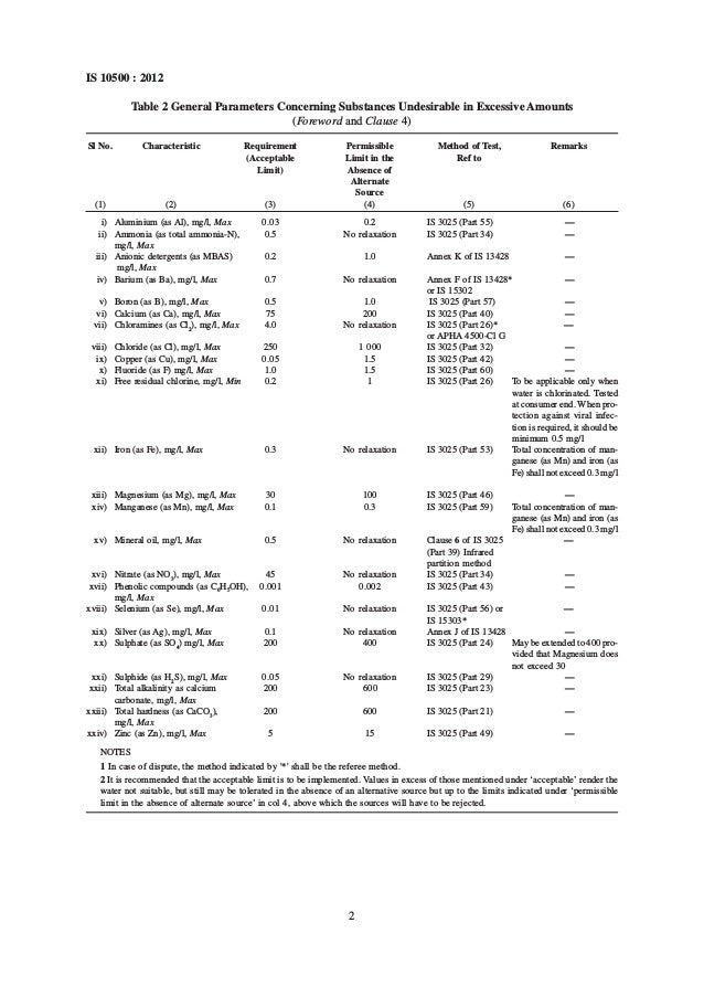 Bis Standards For Drinking Water / Drinking water standards by constituent.