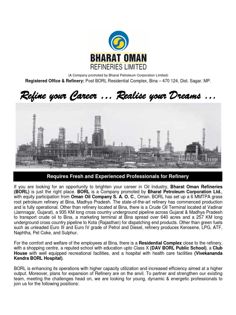 Bharat Oman Refineries Vacancies Advertisement Oil Refinery Petroleum Bpcl aims to shut the bina refinery for about a.