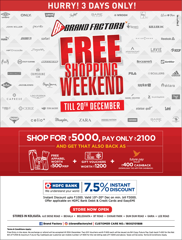 Brand Factory Sale : The free shopping weekend at brand factory allows all its.