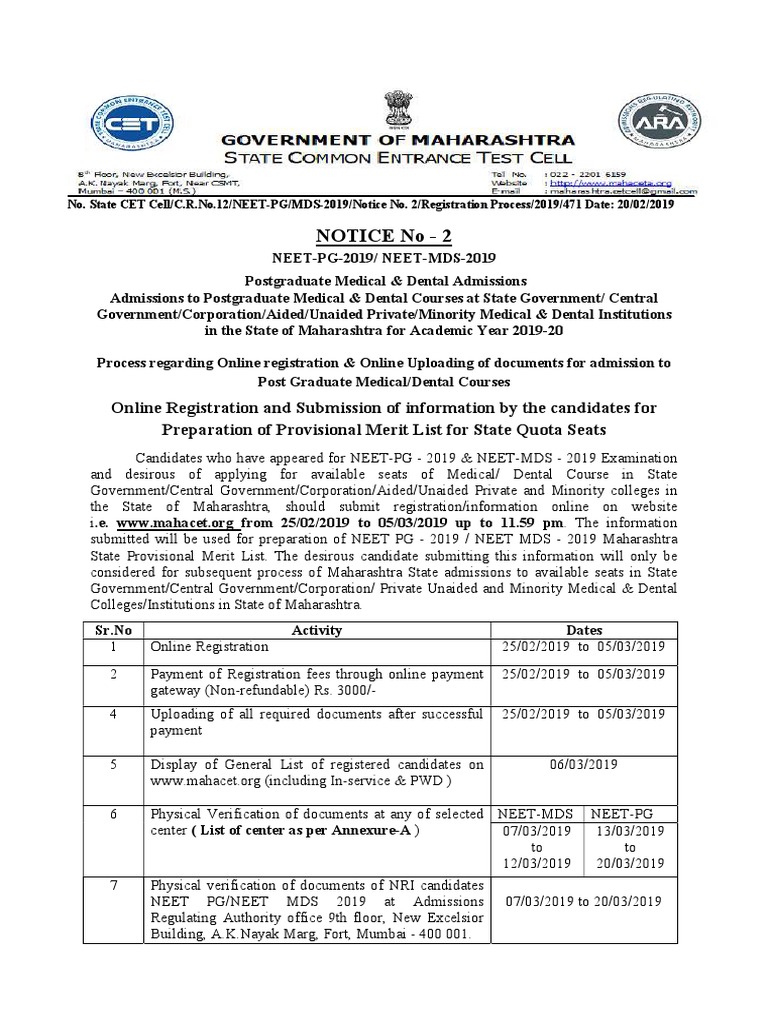 Maharashtra Neet Pg 2019 : It has been released on nbe.edu.in.