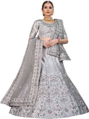 Silver Colour Lehenga Choli : The lehenga choli comes with a draped full length skirt, a gorgeous blouse and a dupatta (scarf).